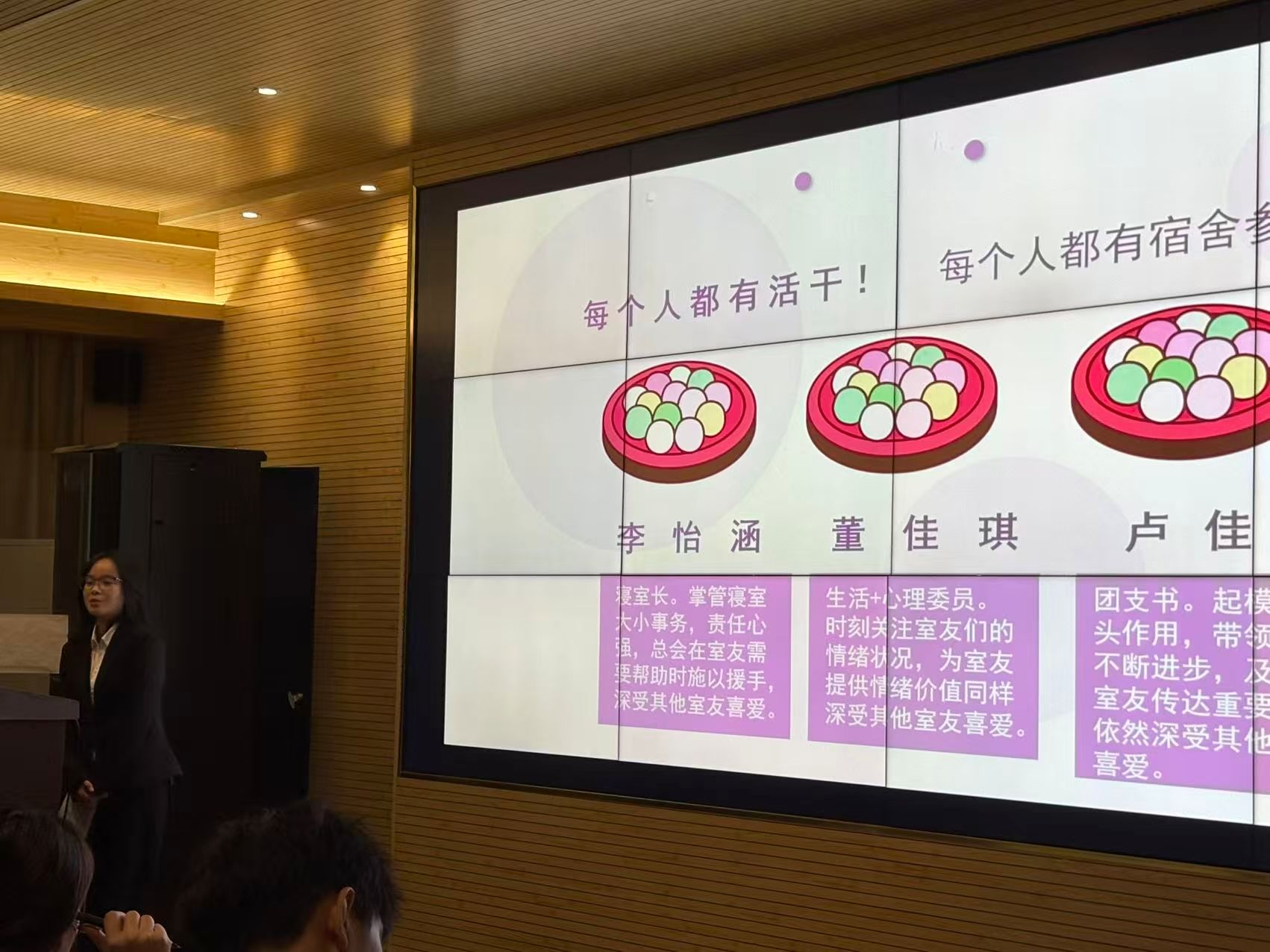 11月12日晚,宿舍雅室共赏暨颁奖仪式在精心布置的教室举行。经线上投票选出的10个获奖宿舍依次进行PPT或视频展示,通过生动的讲解分享宿舍故事与文化理念,充分展现了各宿舍的独特魅力。评审团对活动进行专业点评,肯定了同学们在活动中展现的创造力与凝聚力。随后,为获奖宿舍颁奖,共评选出一等奖1名、二等奖2名、三等奖3名及优秀奖1名,优秀宿舍代表上台领奖,现场掌声不断。