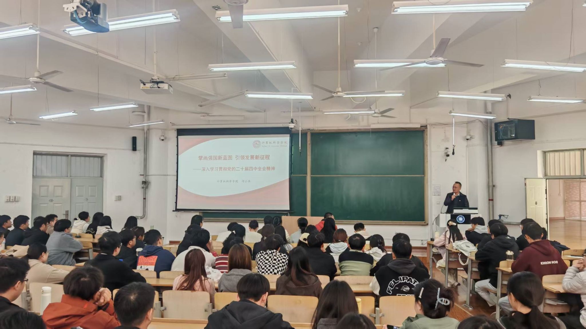 闫小兵做了开班动员讲话,并以“擘画强国新蓝图 引领发展新征程——深入学习贯彻党的二十届四中全会精神”为主题,为全体学员作了党的二十届四中全会精神专题宣讲。同时向全体学员提出两点要求:一是要强化理论武装,把党的二十届四中全会精神学习与党章党史学习贯通起来,带着信念学、带着问题学,要强化实践锤炼,立足计算机专业特色,将理论学习与专业攻坚、志愿服务相结合,以“学思用贯通”的成效展现入党积极分子的先锋模样。二是要严守培训班纪律,珍惜学习机会,主动参与研讨交流,确保学有所获、思有所悟,要将理论学习成果转化为勤奋学习、服务同学、勇担责任的实际行动,以过硬表现向党组织靠拢。