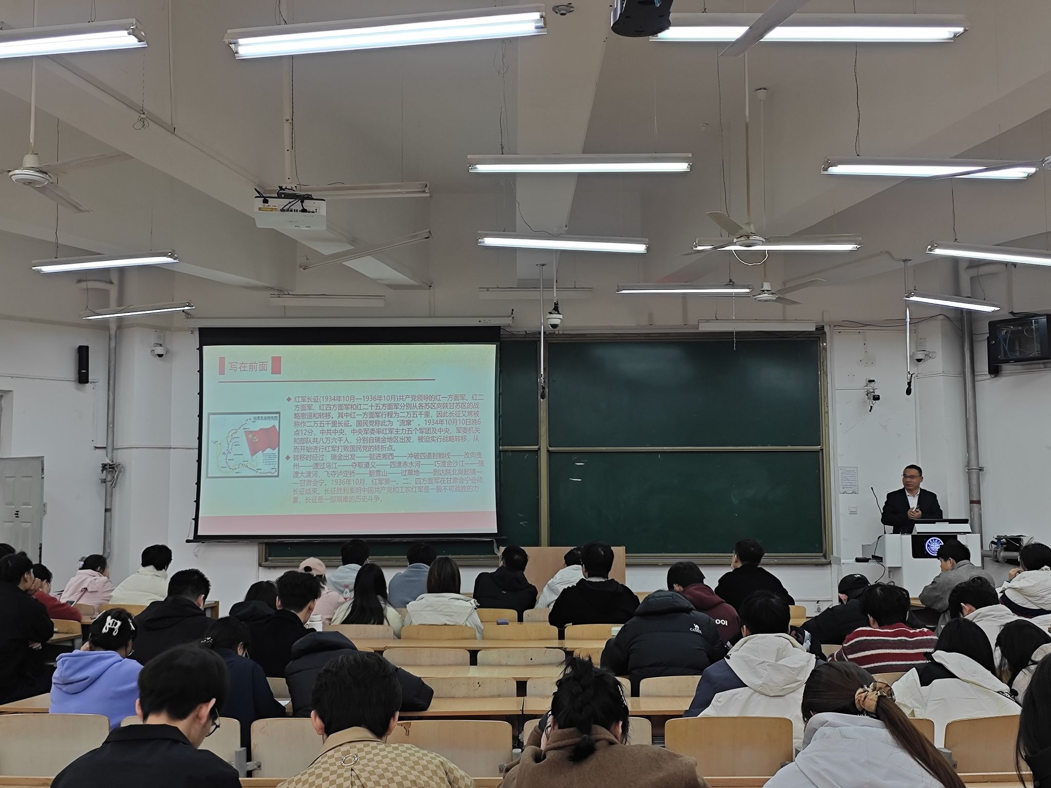 11月10日,赵勇进以《长征精神永放光芒——纪念中国工农红军长征胜利89周年》为题展开讲授。他围绕长征历程中的峥嵘岁月、感人事迹展开讲解,深入阐释长征精神的核心内涵与时代价值,引导参训人员从红色历史中汲取奋进力量,传承和弘扬伟大长征精神。