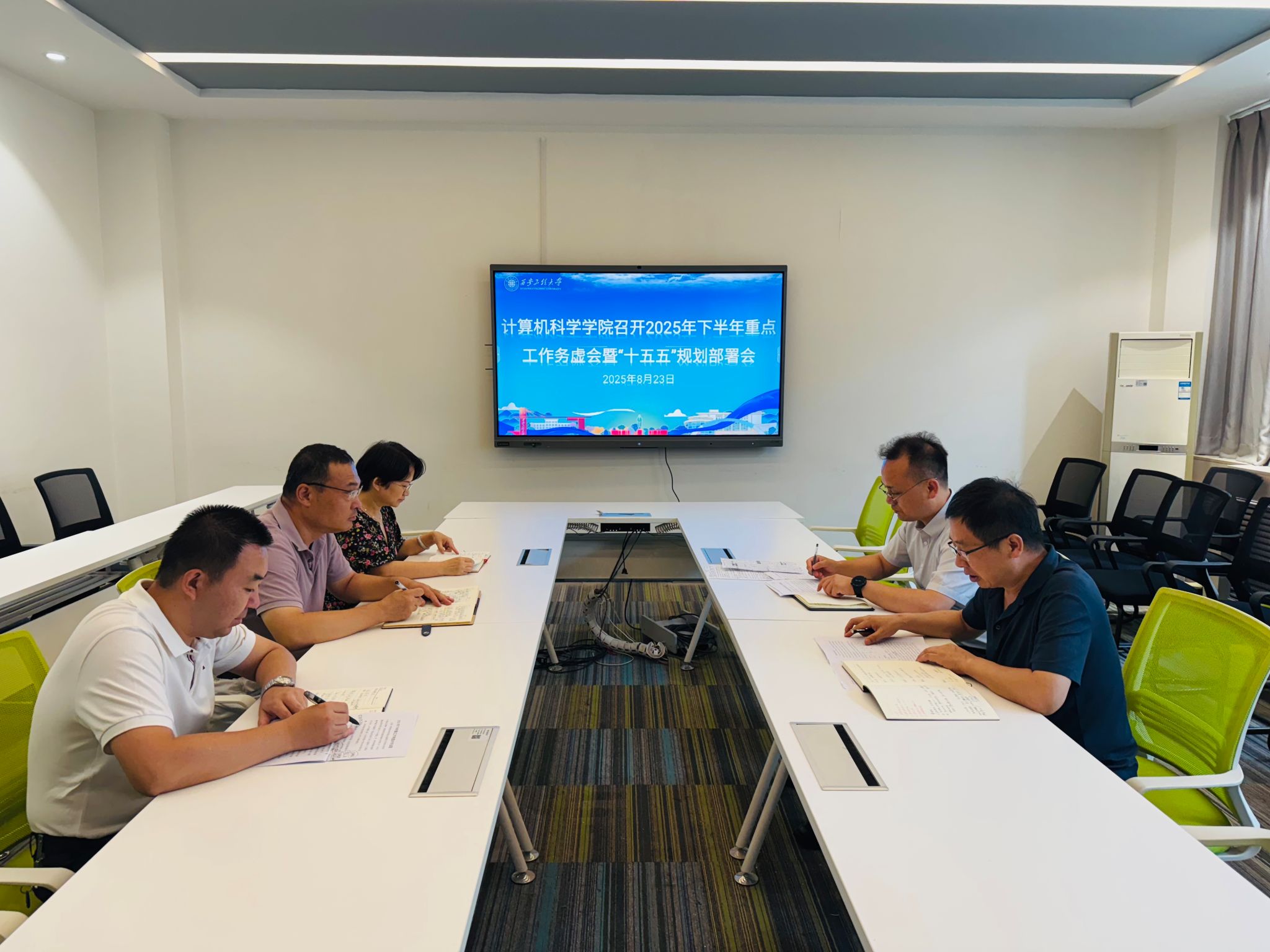 为全面提升人才培养质量与学科建设水平,科学谋划学院未来发展蓝图,8月23日,计算机科学学院召开2025年下半年重点工作务虚会暨“十五五”规划部署会。会议紧紧围绕党建融合业务、本科教育教学、教学科研团队建设、实验室教学发展、师资队伍培育、学生职业规划等关键议题展开深入研讨,凝聚共识,共绘学院发展新图景。张凯兵副院长主持会议。