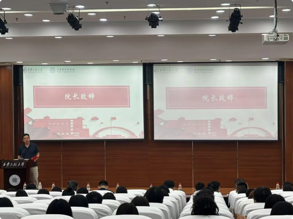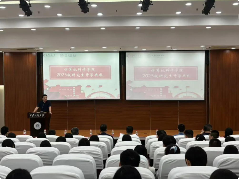 9月3日下午,计算机科学学院在临潼校区图书馆二楼报告厅举行2025级研究生新生开学典礼。学院班子成员、研究生导师、研究生秘书、研究生辅导员,以及全体2025级研究生参加典礼。典礼由学院副院长王蒙主持。