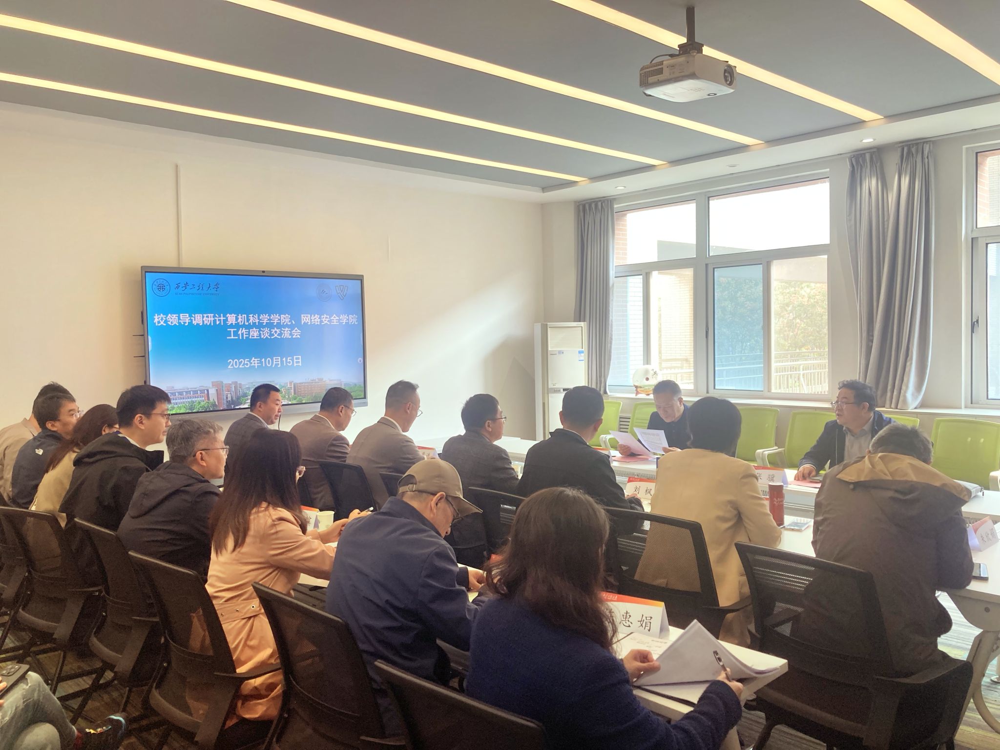 10月15日,校党委书记张志昌赴计算机科学学院、网络安全学院调研,并与两学院教师代表进行座谈交流。两学院党政班子成员、教授、院长助理、各系(专业、中心、办公室)负责人,党支部书记、教师代表参加座谈。党政办公室主任张骥陪同调研并主持座谈交流会。