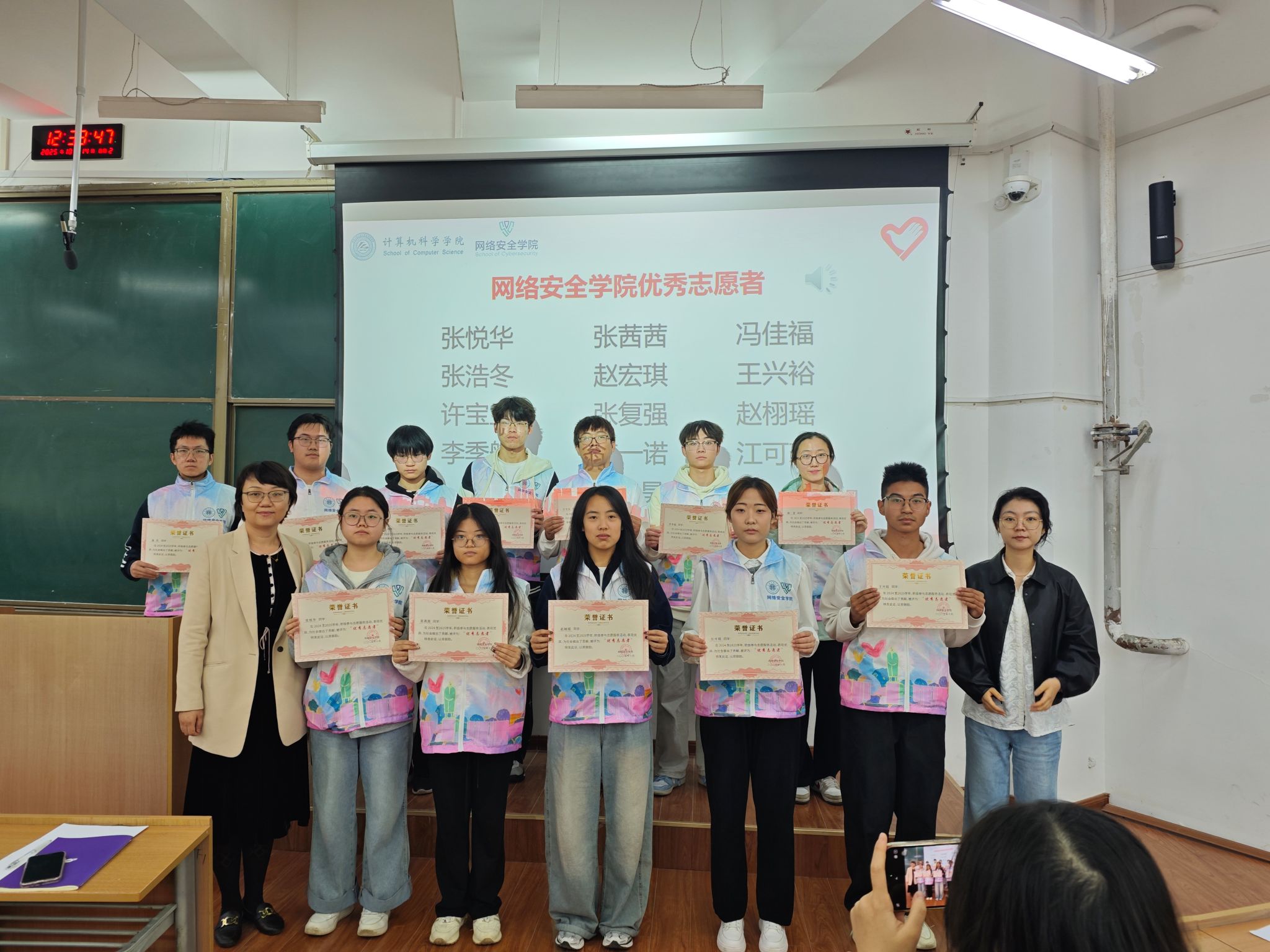 此次活动的成功举办,不仅表彰了先进、树立了榜样,更完成了志愿精神的接力传承,为两学院志愿服务工作注入了新的活力。下一步,计算机科学学院与网络安全学院将继续深化志愿服务体系建设,搭建更广阔的实践平台,引导更多青年学生从“我”的个体力量汇聚成“我们”的集体合力,让志愿精神在校园内外蔚然成风,为学校高质量发展和社会公益事业贡献更多青春智慧与力量。(撰稿:左温慧 审核:赵勇进、刘蓉)