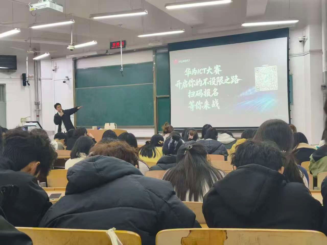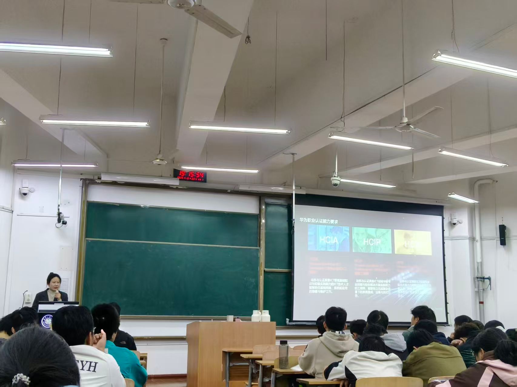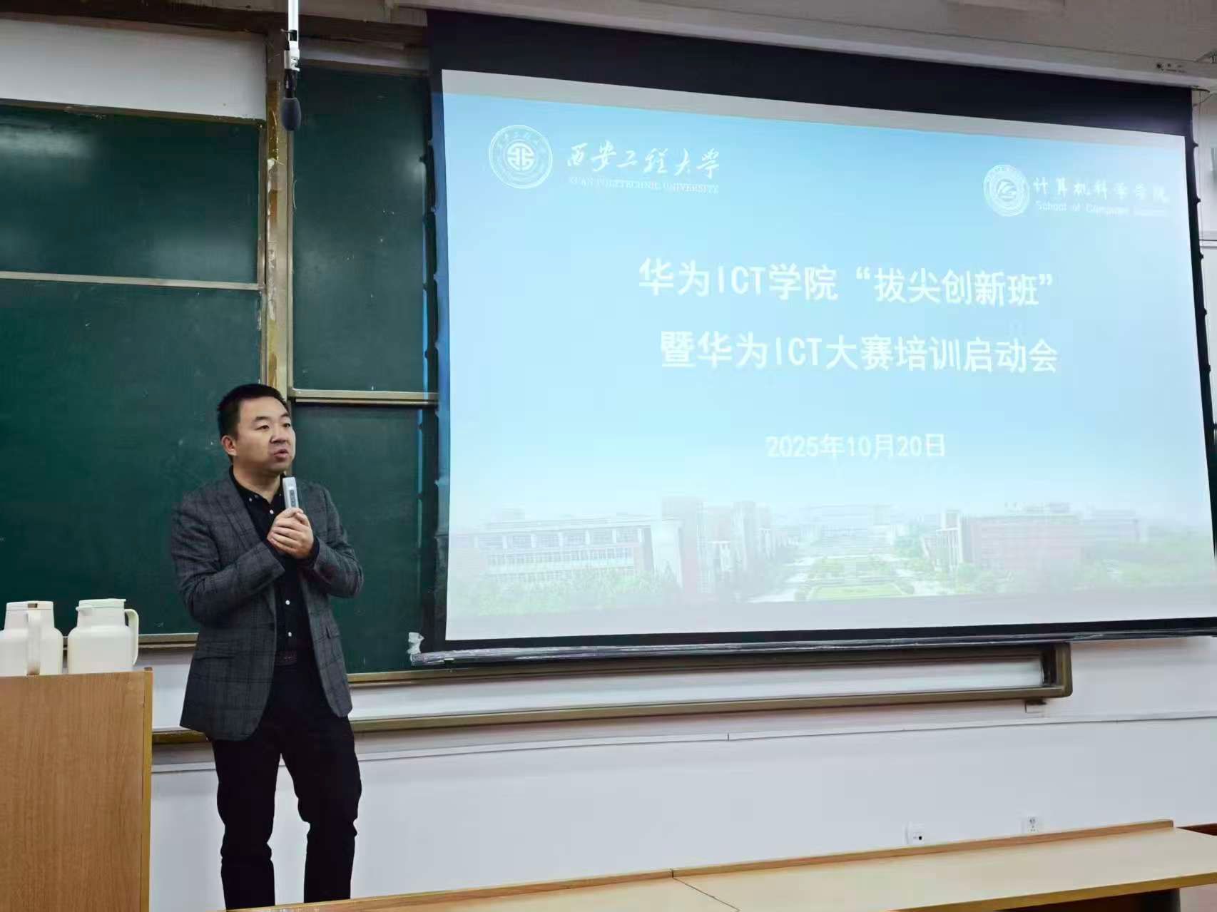 2025年10月20日,计算机科学学院与华为技术有限公司联合举办华为ICT学院“拔尖创新班”暨华为ICT大赛培训启动会。华为陕西人才发展经理付皓焱、华为陕西鲲鹏昇腾高校总监陈佳俊、讯方技术教育事业部陕西高校服务部文娟总经理、郑妍经理出席启动会,会议由学院副院长王蒙主持,学院350余名学生报名参加。