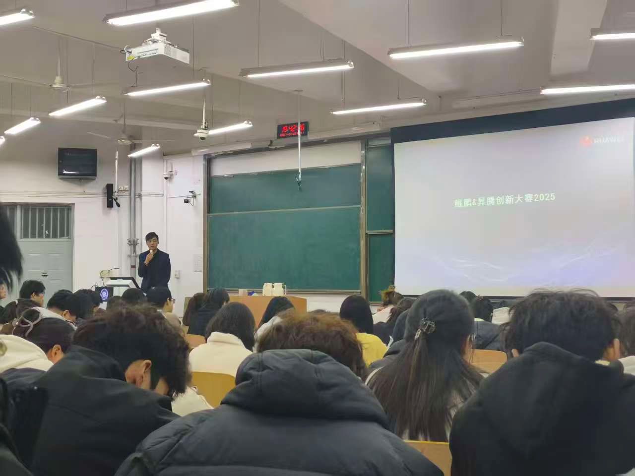 专家们带来了精彩分享。郑妍经理回顾讯方技术与华为二十五年深度合作历程,在技术研发、人才培养等方面成果斐然,还详细讲解了华为ICT学院合作模式、2025年政策及学生权益,让学生全面了解学院。付皓焱经理以华为ICT大赛规模切入,指出大赛是创新人才的“练兵场”,展示往届成功案例后,精准介绍了大赛规划与赛项设置,为参赛学生指明方向。陈佳俊总监回顾往届鲲鹏&昇腾创新大赛,总结经验亮点,指出优秀作品为行业提供了新思路,并介绍赛事评选标准,鼓励学生创新实践,并与学生积极互动。