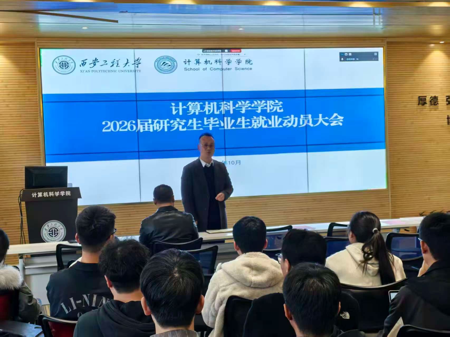 10月21日,计算机科学学院在笃行楼614报告厅召开2026届研究生毕业生就业动员大会。学院全体班子成员、研究生辅导员,以及80余名2026届在校研究生参加会议,会议由学院副书记赵勇进主持。