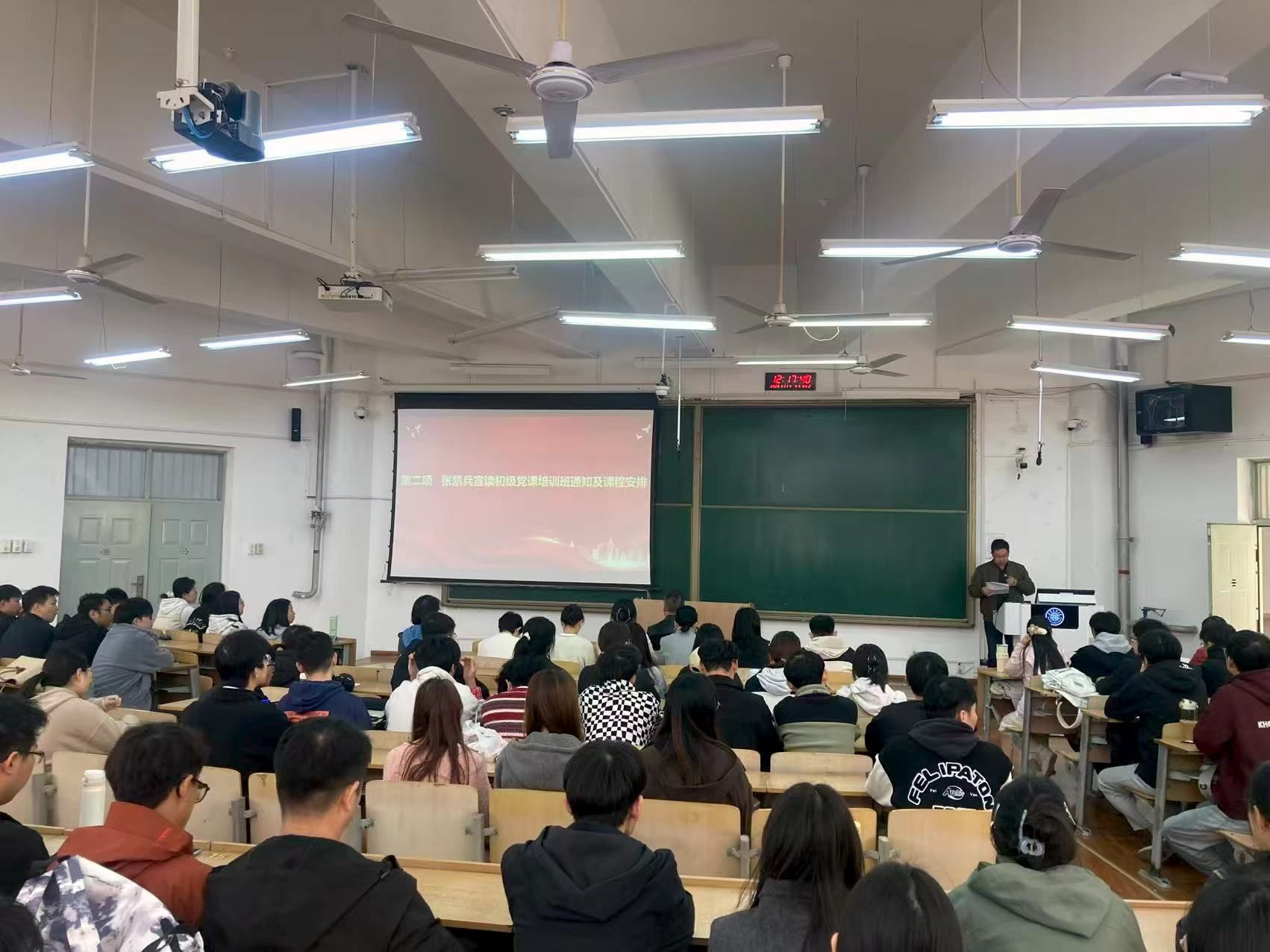 开班仪式在雄壮的国歌声中拉开帷幕。张凯兵宣读了《关于举办计算机科学学院2025年下半年初级党课暨入党积极分子培训班的通知》,明确了课程具体安排,并围绕政治素养提升、学习纪律遵守、理论实践结合等方面,对全体学员提出具体要求。