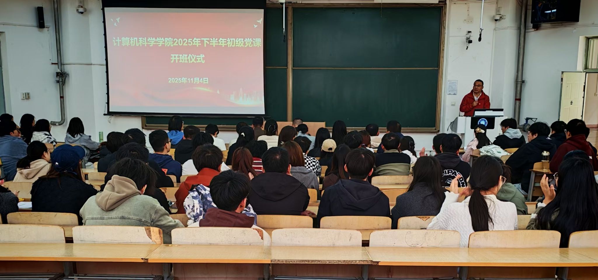 为进一步深入学习宣传贯彻党的二十大精神、党的二十届四中全会精神,切实加强对入党积极分子的系统性教育培养,引导其端正入党动机,牢固树立共产主义远大理想信念。11月4日,计算机科学学院2025年下半年初级党课培训班在临潼校区B-133教室开班。学院党委副书记闫小兵、副院长张凯兵、全体本科生研究生党支部书记及100余名积极分子参加。开班仪式由学院党委副书记赵勇进主持。