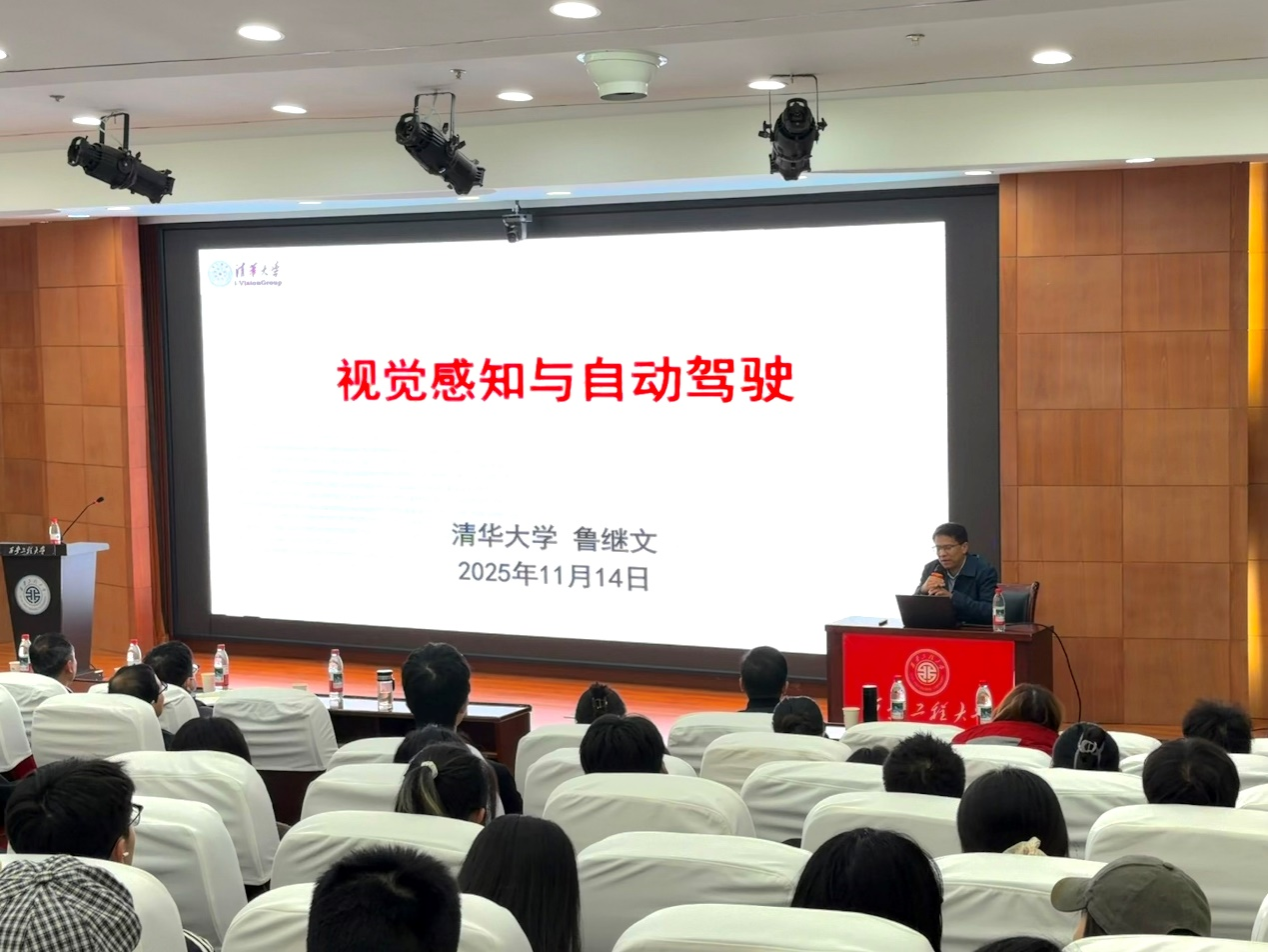 2025年11月14日14:30,西安工程大学第六十九期“经纬学术沙龙”暨计算机科学学院第二十一期“极客论坛”专题报告会在临潼校区图书馆一楼报告厅成功举办。本次活动特别邀请清华大学自动化系副主任、国家杰出青年科学基金获得者、IEEE/IAPR Fellow鲁继文教授作专题报告,报告题目为“视觉感知与自动驾驶”。报告会由计算机科学学院副院长张凯兵主持,学院150余名师生参加了此次学术交流活动。