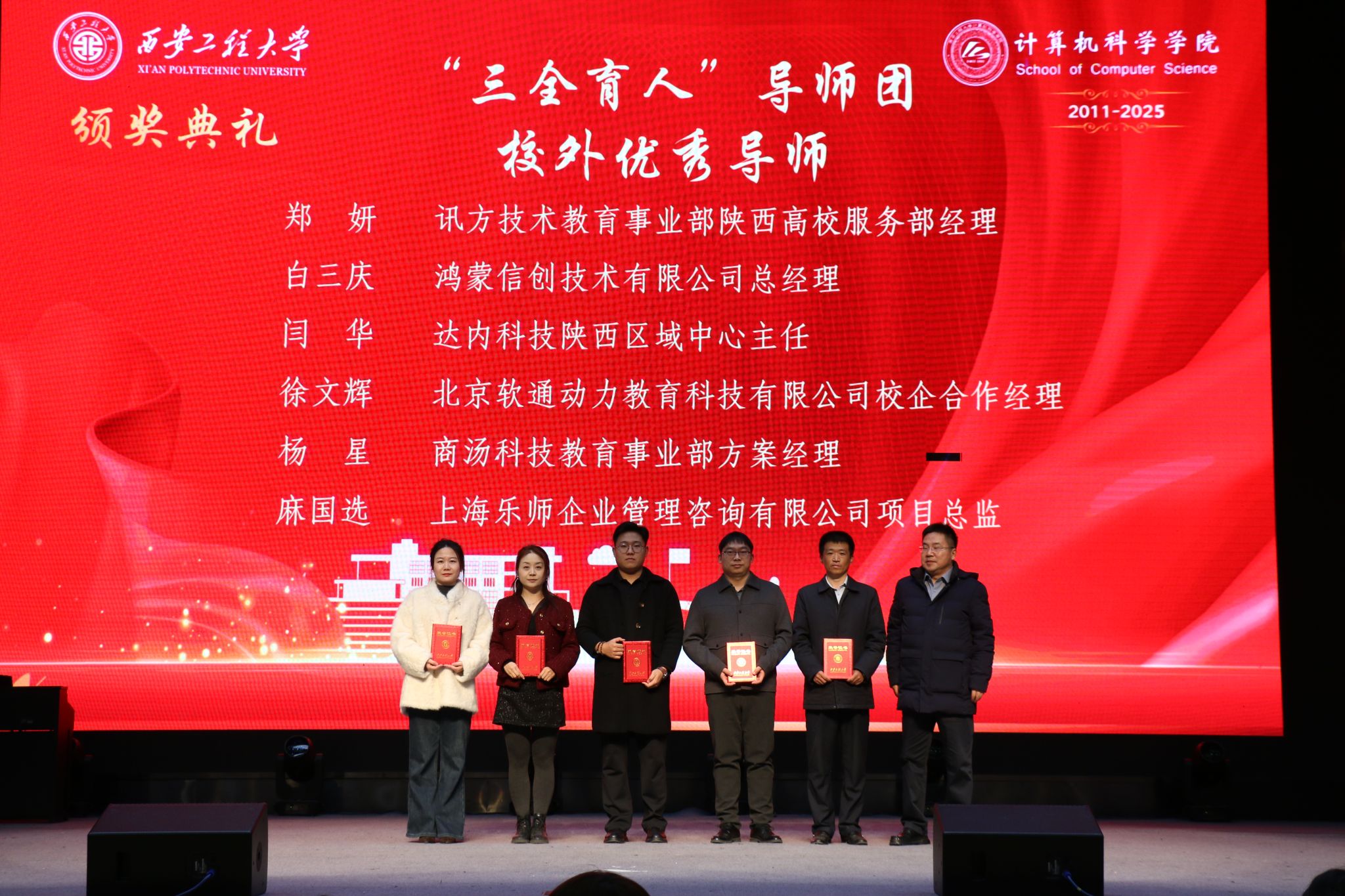 “程”风破浪承初心,以“算”筑梦赴韶华。2025年12月15日19:00,西安工程大学计算机科学学院“三全育人”学风建设表彰大会暨IT青年夜2.0&&win艺之巅14.0迎新晚会在临潼校区大学生活动中心圆满举行。校党委副书记井浩,校党委副书记、纪委书记、监察专员张美忠,相关职能处室负责人、各学院代表、企业代表、“三全育人”导师团校外导师代表,计算机科学学院党政班子、各系(中心、办)负责人、教师代表及2025级全体本科生、研究生齐聚一堂,共襄盛举。